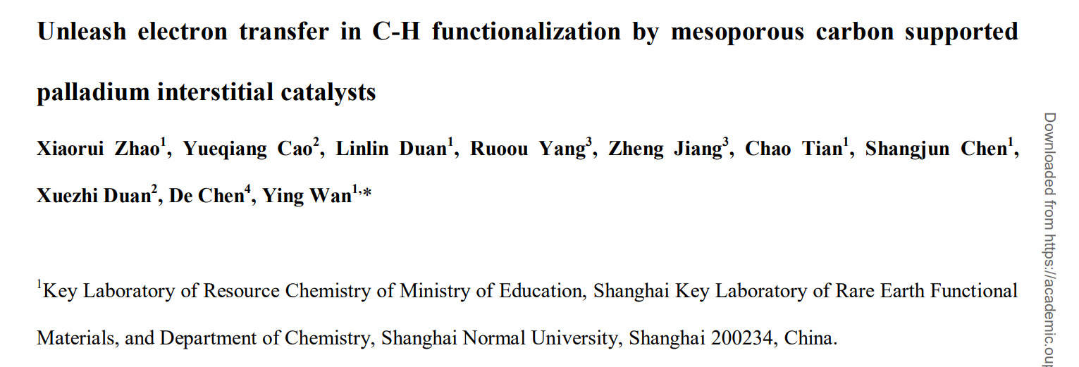成人影院 万颖教授团队利用Pd基间隙固溶体催化剂实现了均相体系中难以发生的一个新反应:五元杂环化合物高选择性直接双芳基化反应。研究成果以“Unleash electron transfer in C-H functionalization by mesoporous carbon supported palladium interstitial catalysts”为题,在线发表于《国家科学评论》(National Science Review),第一作者为赵小瑞,通讯作者为万颖教授,通讯单位是成人影院 。