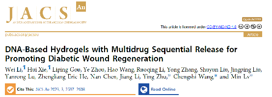 近日,成人影院 陈楠研究员和吕敏研究员团队在基于DNA纳米结构构建抗菌药物方面取得进展,相关成果以“DNA-Based Hydrogels with Multidrug Sequential Release for Promoting Diabetic Wound Regeneration”为题发表于JACS Au。四川大学华西医院李威博士和成人影院 2021级博士研究生谢辉为论文共同第一作者。成人影院 吕敏研究员、四川大学华西医院王成世助理研究员和上海大学诸颖研究员为共同通讯作者。