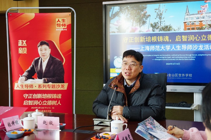 党的二十大明确提出:“加强师德师风建设,培养高素质教师队伍,弘扬尊师重教的社会风尚。”习近平总书记于2023年教师节首次提出中国特有的教育家精神,深刻阐述了教育家精神的丰富内涵和实践要求,为加强新时代高素质教师队伍建设指明了前进方向,提供了根本遵循。赵毅老师的人生导师沙龙给同学们带来极大的勉励,他对教育家精神丰富内涵的深刻阐释,必将引导同学们牢记为党育人、为国育才的初心使命,树立“躬耕教坛、强国有我”的志向和抱负,成长为担当民族复兴大任的时代新人。
