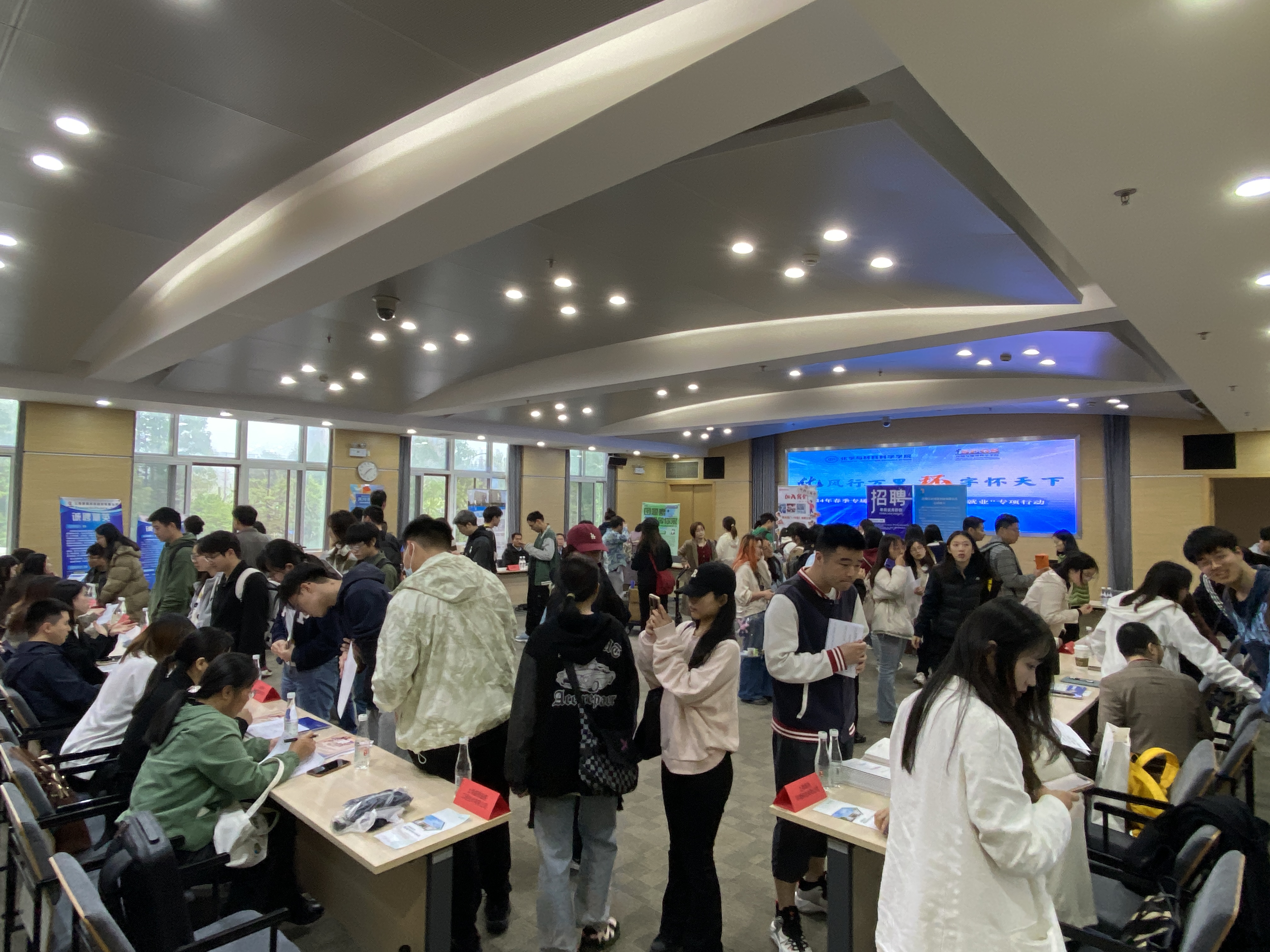 招聘会吸引了来自多个学院300多名学生前来应聘,现场气氛热烈。招聘单位通过分发宣传册、面对面交流等方式向学生介绍公司的概况和企业的人才需求等。同学们就应聘要求、职业发展方向、薪资待遇等问题与企业积极沟通和深入交流。通过与用人单位的充分沟通,同学们不仅深入了解了企业的用人需求,同时也对于目前就业市场的形势有了更清晰的认识。部分同学现场就与用人单位达成了初步就业意向。