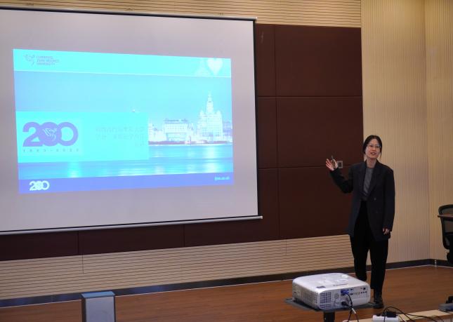 首先,方绮雯老师从学校历史、师资力量、专业设置、参加项目的必要条件及申请流程等方面对英国利物浦约翰摩尔大学项目进行了详细介绍,并为同学们讲解了如何进行国际交流时间规划。