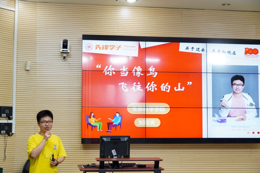 生命科学学院刘印天学长以“你当像鸟,飞往你的山”为题,从过去、未来和现在三个维度进行分享。