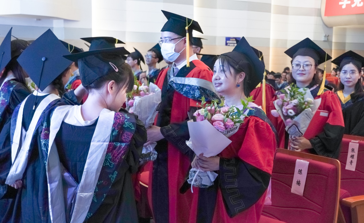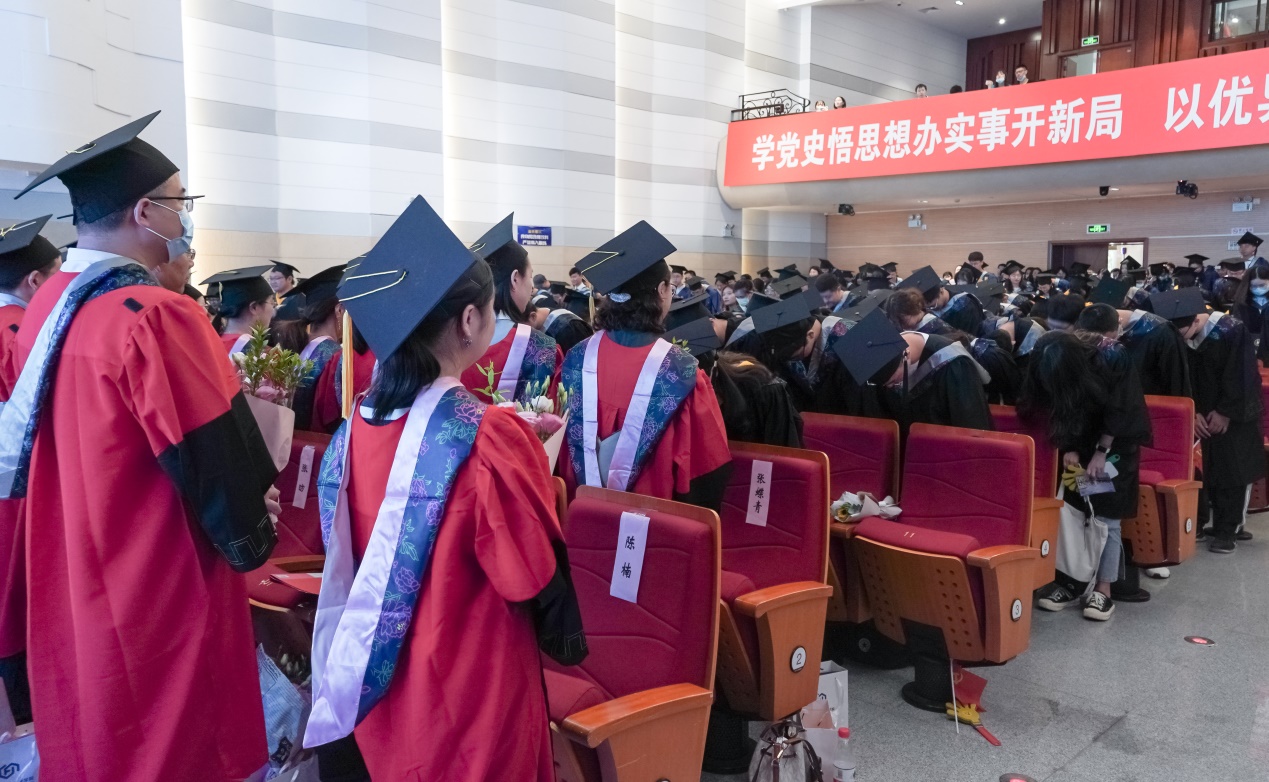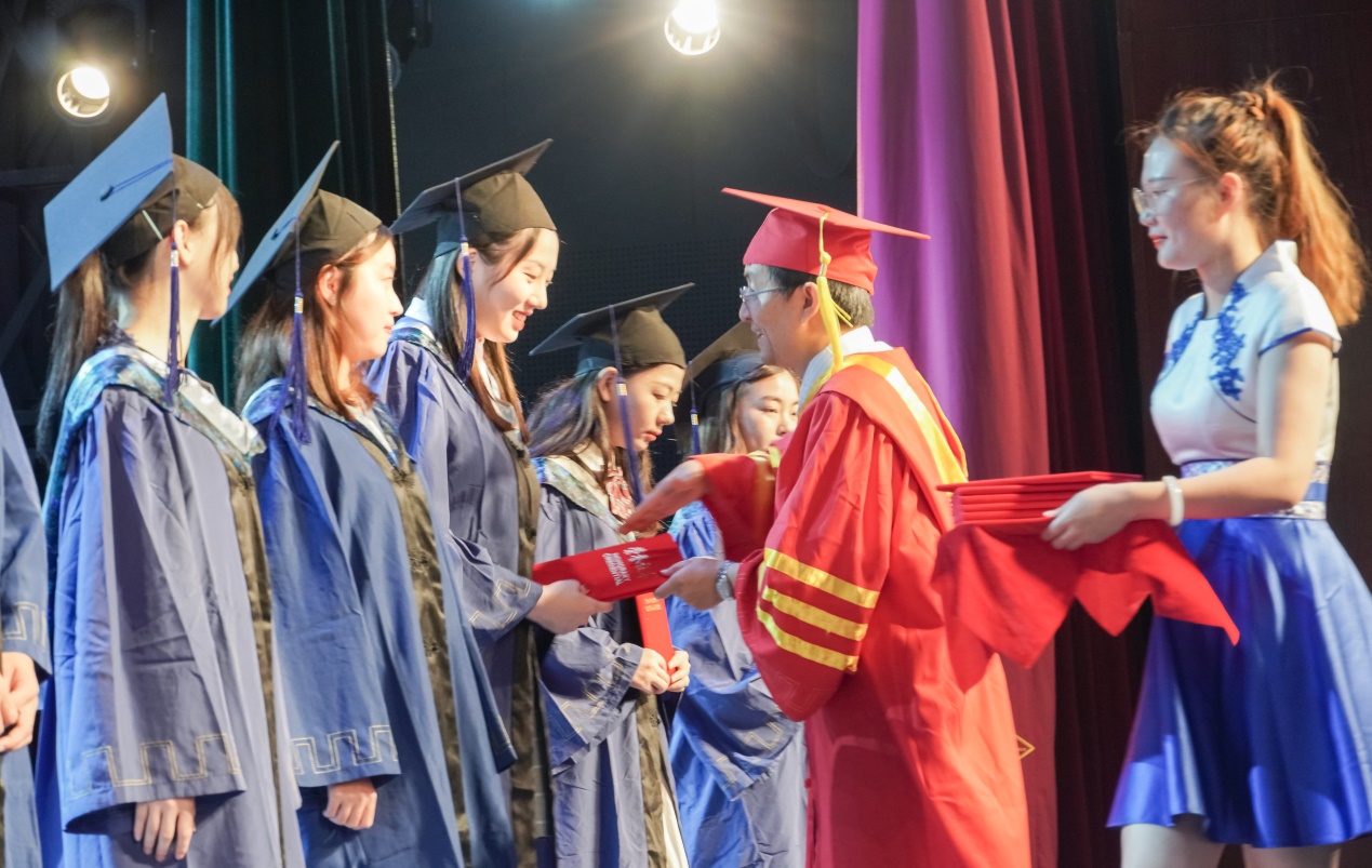 副书记、副院长张皓月老师宣读授予学士及硕士学位毕业生名单。校领导和导师们先后为成人影院 本科和硕士毕业生正冠拨穗并颁发学位证书。从老师手中接过的学位证书,既是同学们为大学生活交上的一份答卷,亦是母校对学子的殷切期盼。