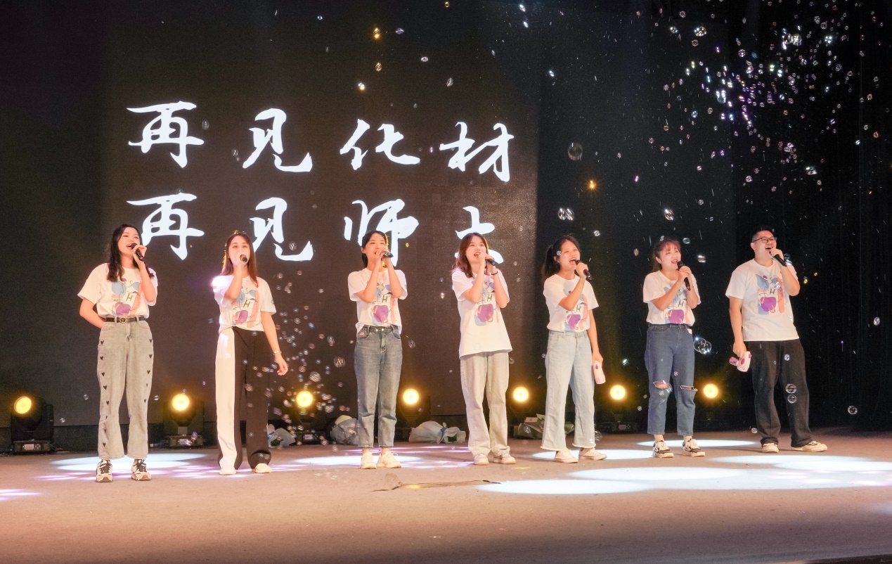 “你说师大岁月,平凡而又深刻,化成你我,念念不忘的永远”。毕业生倾情演绎自己填词的化材毕业季主题曲《念念不忘》和满怀青春激情的歌曲《少年》。星光摇曳闪烁,歌声清脆入耳,毕业生放飞梦想的五彩气泡,携手并肩,逐梦远航。