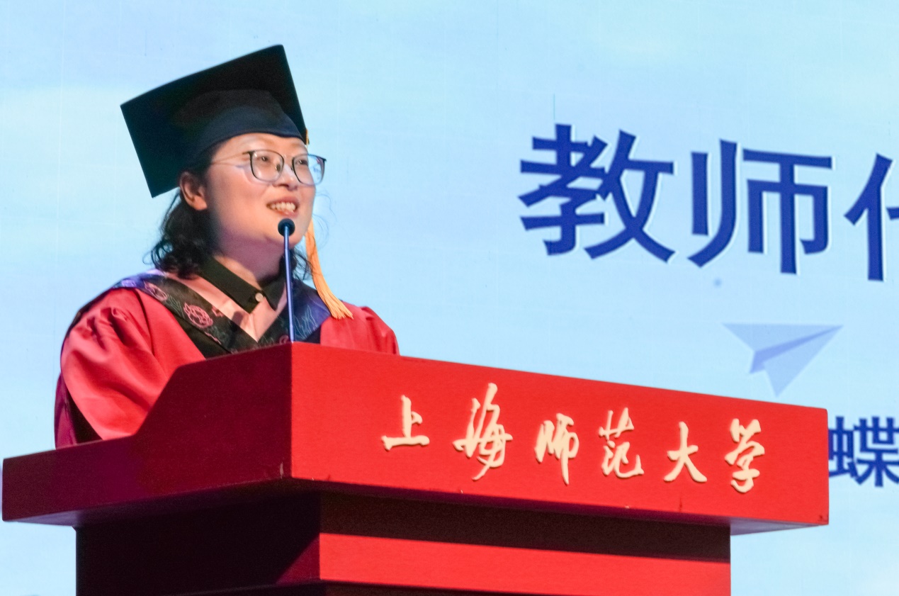 张蝶青老师作为教师代表发言。她用三句话助力毕业生迎接未来的挑战,成为堪当民族复兴重任的时代新人。“追逐梦想,用梦想之光照亮奋斗之路”,“坚定自信,用信念之力开创美好未来”,“学会感恩,用感恩之心拥抱幸福生活”,三句话蕴含了老师对同学们深深的希冀与祝福。