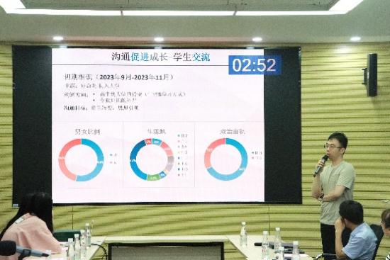 会上,前三届荣誉班导师分别就本学年开展的工作进行述职汇报。荣誉班导师们结合年级、班级特点,针对性开展党团建设、学业辅导、竞赛指导、生涯规划、心理疏导等工作,为学生解决思想、学业等问题提供帮助,促进个体和班级向上向善发展。荣誉班导师工作在青年教师和学生之间建立了一种新型纽带关系,通过拓展交流场域、丰富交流内容强化了青年教师对学生思想品德、学习生活等各方面的正向引导。