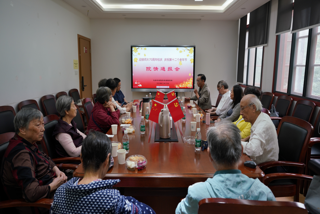 为庆祝全国第十二个老年节,迎接即将到来的学校建校70周年庆,10月10日下午,成人影院 在体化楼224C会议室召开了退休老同志座谈会暨院情通报会。