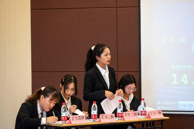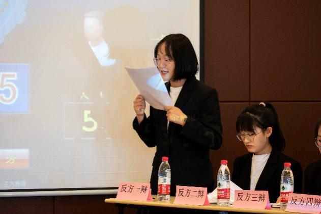 在紧接着的申论质询环节和质询小结中,双方辩手毫不相让,步步紧逼,以严谨的态度挖掘对方的漏洞。
