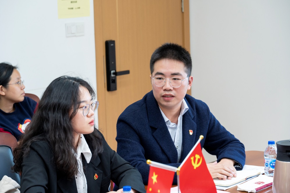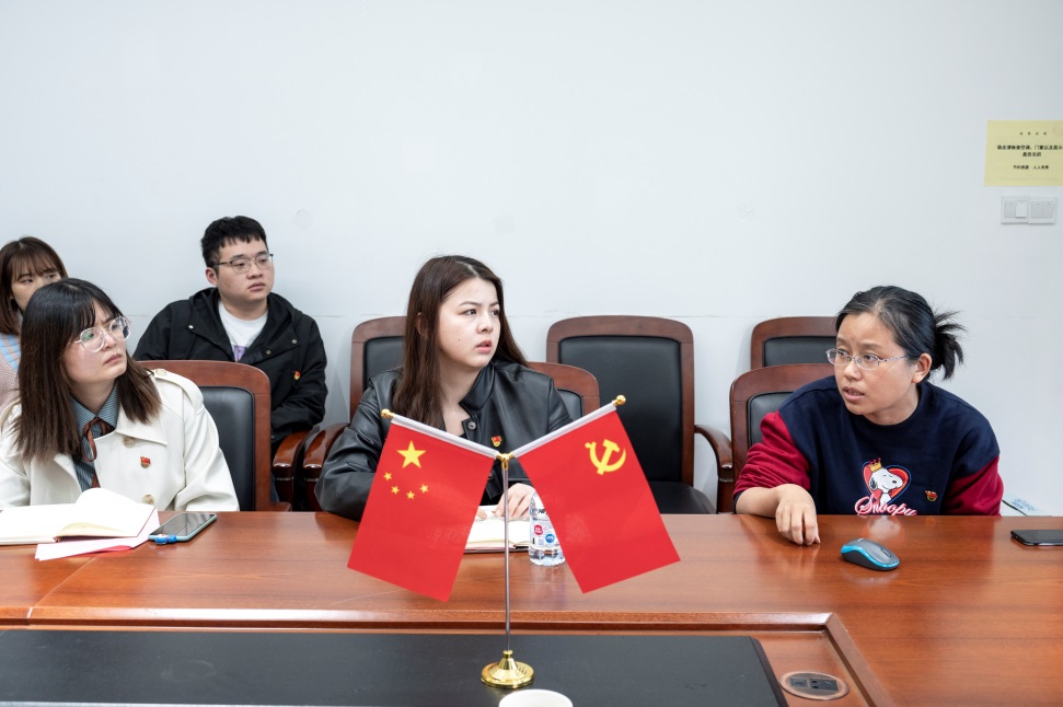 物理化学(研)党支部书记阮楠楠同学作为研究生党支部书记代表发言,她介绍了党支部的基本情况,分享了党支部工作的两大原则,即思想有深度、活动有广度。介绍了研究生样板党支部项目“立报国之志,强科创之力——助力研究生新生成长”的目标和计划,为各党支部提供了参考和借鉴。