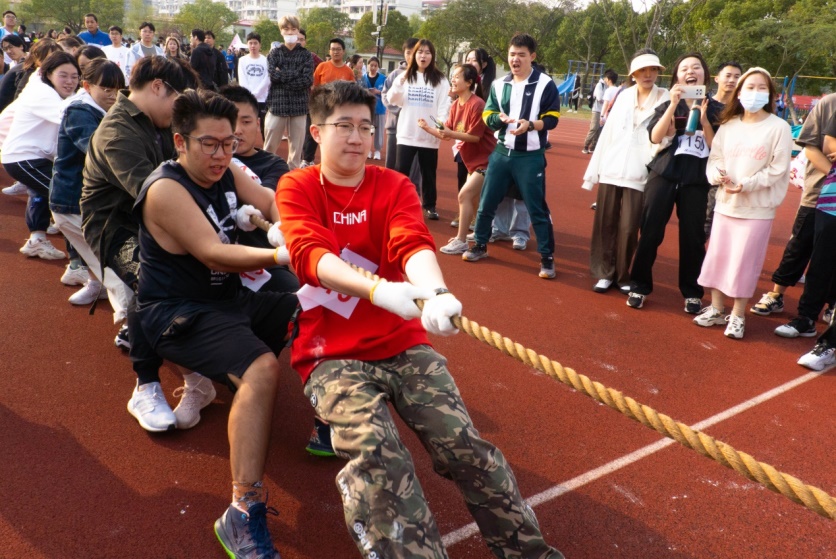 粗绳在手,奋力拼搏;咬紧牙关,绝不相让。