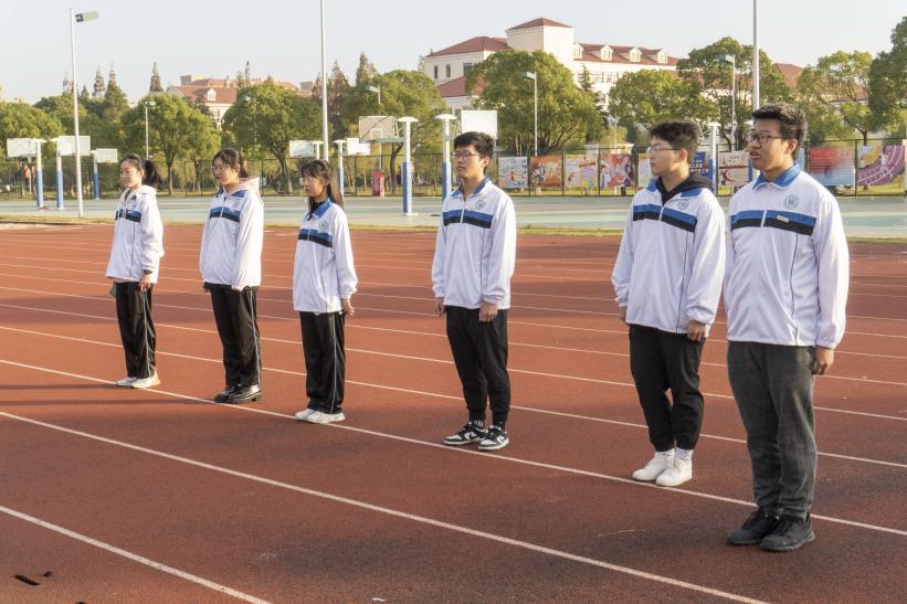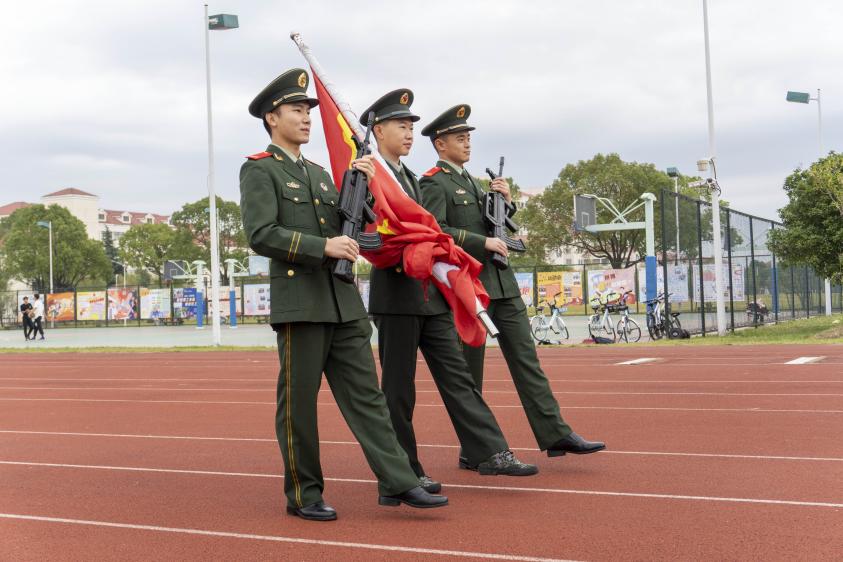 三位退伍兵步伐矫健,昂首阔步地出旗;同学们注目国旗,眼里饱含爱国热情,嘴唇翕合之间,昂扬的歌声,盘旋在操场上空,久不能绝。