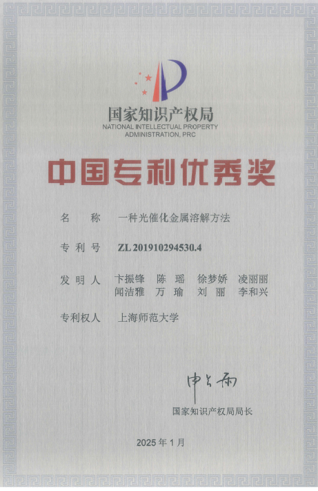 近日,成人影院 卞振锋教授团队的授权专利“一种光催化金属溶解方法”在第二十五届中国专利奖评选中荣获“专利优秀奖”。这一荣誉不仅是对成人影院 科技创新能力的国家级权威认证,更是学院多年深耕学术沃土、坚持基础研究、技术攻关、产业化协同发展的重要标志。