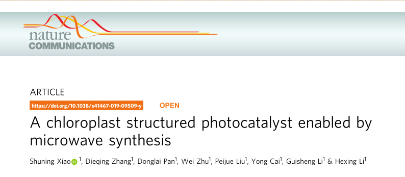 资源化学教育部重点实验室李和兴&张蝶青团队通过“微波超热点”实现类叶绿体仿生光催化剂助攻光生载流子高效分离,此项成果近日以独立单位在线发表于国际期刊Nature Communications,论文题为《 A chloroplast structured photocatalyst enabled by microwave synthesis》。