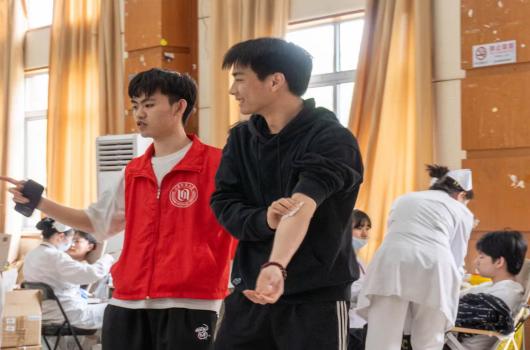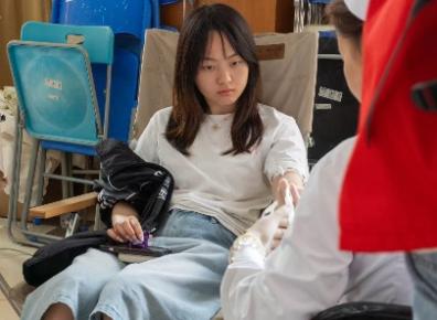 献血场氛围温暖而有序,同学们在志愿者的贴心引导下,依次完成登记表填写、血压测量、验血初筛等环节。符合条件的同学们安静地坐在等候区,等待着献出他们的热血。