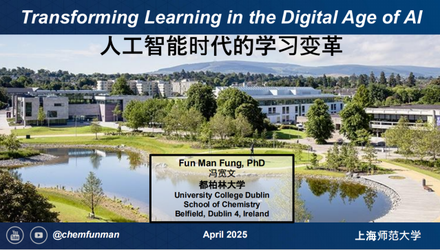 冯宽文博士现任都柏林大学化学系助理教授,毕业于新加坡国立大学,同时担任新加坡化学学会理事会理事。在AI-STEM教育领域,冯博士成果丰硕,发表了多篇高影响力的研究论文。此次讲座以“人工智能时代的学习变革”为主题,冯博士围绕这一主题,深入剖析了AI在STEM教育领域的应用现状,从教学方法、学习体验、课程设计等多个维度展开探讨,并对该领域的未来发展方向进行了前瞻性的分析与展望。