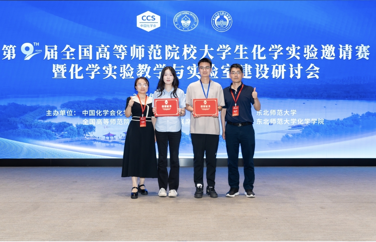 近日,第九届全国高等师范院校大学生化学实验邀请赛在东北师范大学落下帷幕,成人影院 2022级化学师范世承班学生胡君宇和徐顾晔同学凭借扎实的理论功底与娴熟的实验技能,与来自全国47所高师院校(含6所部属师范大学)的94名选手同场竞技,双双荣获二等奖。