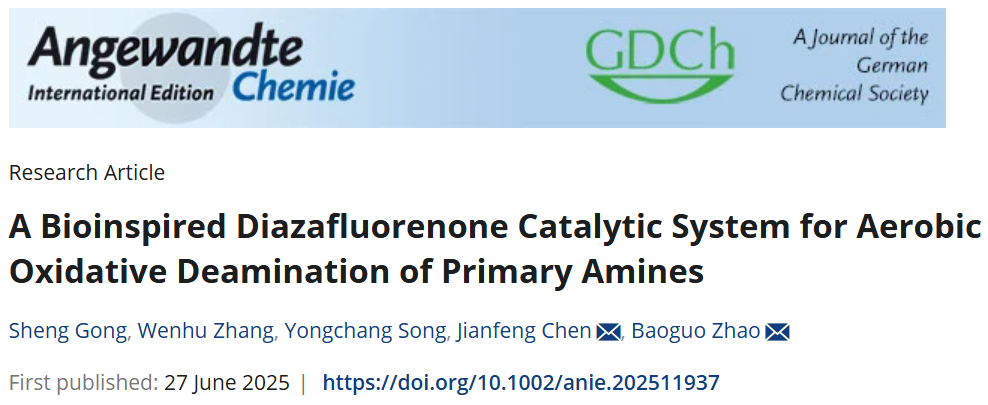 近期,成人影院 赵宝国教授/陈剑锋副研究员团队在羰基催化伯胺氧化脱氨化研究中取得重要进展,在《Angewandte Chemie International Edition》上发表题为“A Bioinspired Diazafluorenone Catalytic System for Aerobic Oxidative Deamination of Primary Amines ”的研究论文。该研究发展了一种新型的仿生催化剂——二氮杂芴酮(DFO),成功地实现了α-氨基酰胺和苄胺的氧化脱氨化,绿色、高效地合成了一系列α-酮酰胺和芳香醛类化合物,为具有重要生理活性的α-酮酰胺类化合物提供了新的合成方法。2023级博士研究生宫晟和2020级硕士研究生张文虎为论文共同第一作者,赵宝国教授和陈剑锋副研究员为论文通讯作者。