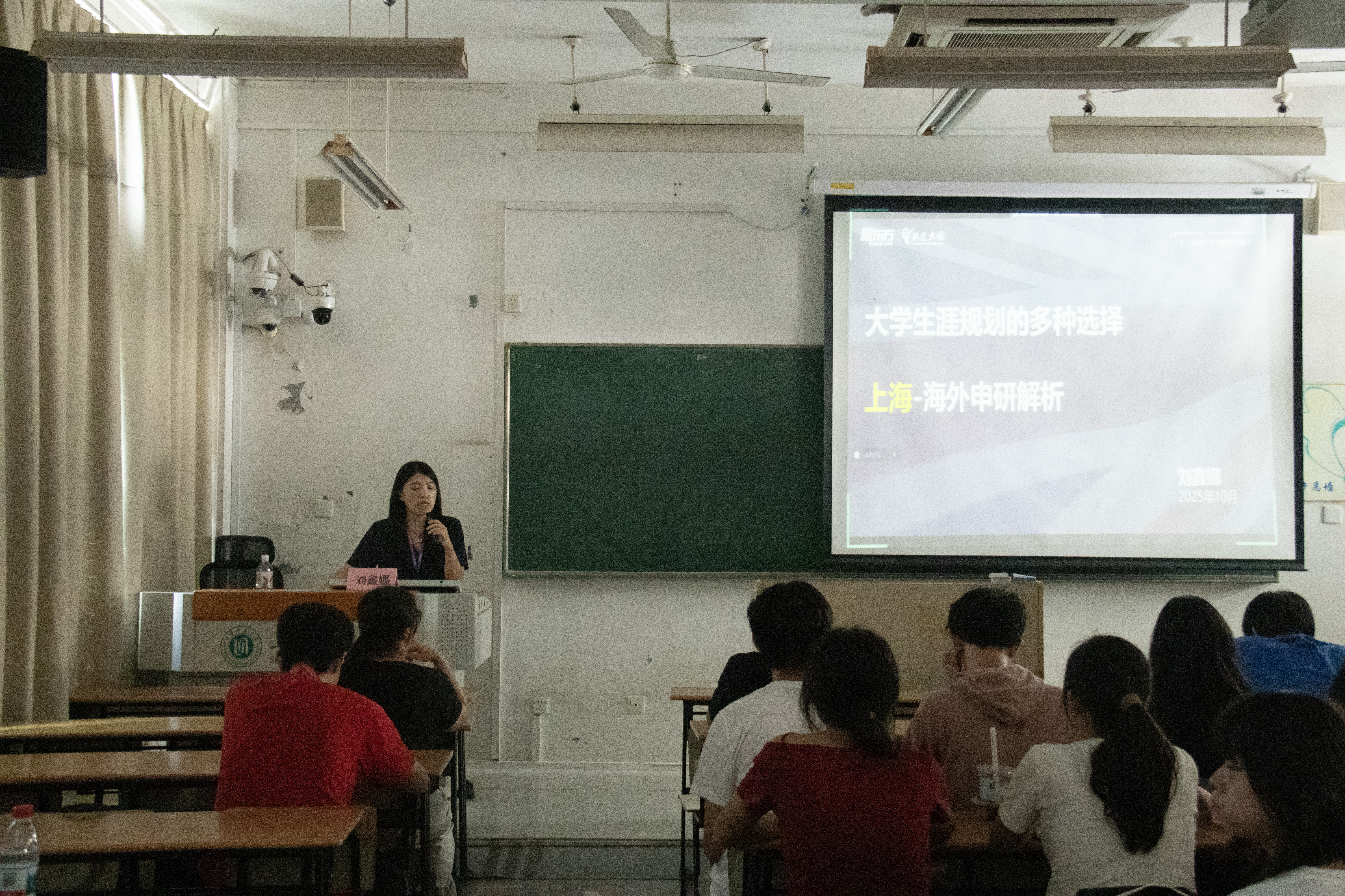 为帮助化材学子明晰生涯发展路径、拓宽海外深造渠道,10月11日13:30,学院在三教201开展海外高校升学宣讲会。本次活动特邀学院办公室外事秘书杨宇、新东方前途出国刘鑫娜担任分享嘉宾,2024级本科生辅导员许芯蕾主持,为在场学子送上满满“留学干货”。