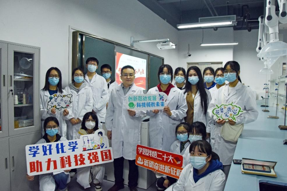 擘画新蓝图,奋斗新征程。11月28日下午,成人影院 11月份的人生导师沙龙活动走进实验室,在奉贤校区科技楼C609顺利举办。我校党的二十大精神中青年骨干宣讲团成员张昉教授以“使命担当,化学强国”为主题,带领同学们学习领悟二十大报告中的“化学”,勉励同学们学好化学,将个人发展融于时代使命。活动由成人影院 党委副书记、副院长张皓月老师主持。