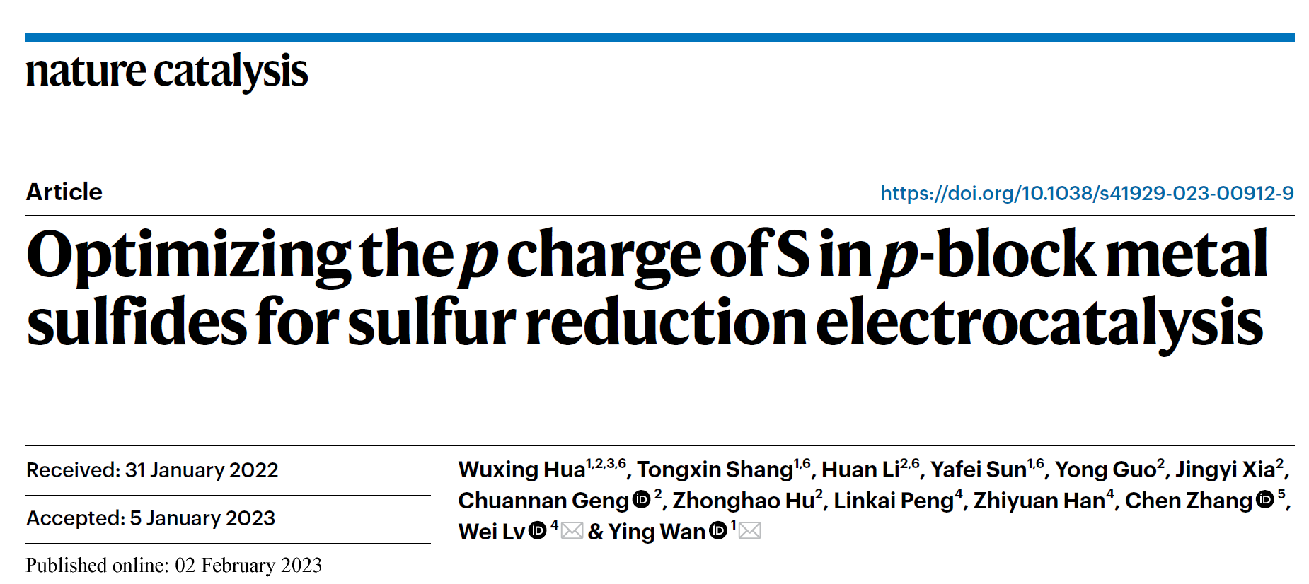 近日,我校成人影院 万颖教授团队在Nature子刊《Nature Catalysis》(IF = 40.7)上发表论文 “Optimising the p charge of S in p-block metal sulfides for sulfur reduction electrocatalysis”,揭示了p区金属硫化物中硫的p电荷密度对硫还原反应活性的调变规律,为锂硫电池催化材料的理性设计和高比能锂硫电池实用化技术开发提供了新思路。成人影院 为第一署名单位,化五星、尚童鑫、李欢、孙雅飞为论文共同第一作者,成人影院 万颖教授、清华大学深圳国际研究生院吕伟副研究员为论文共同通讯作者。