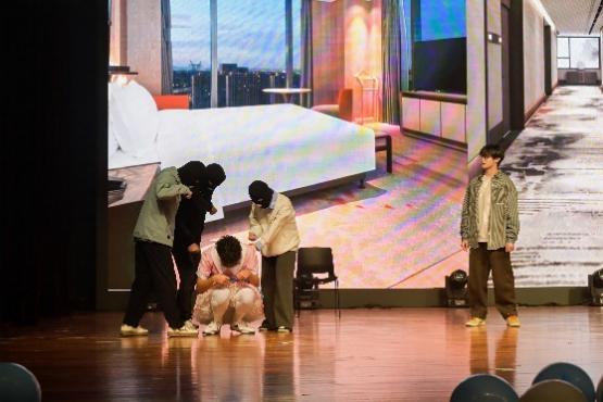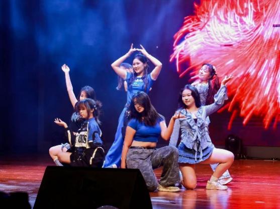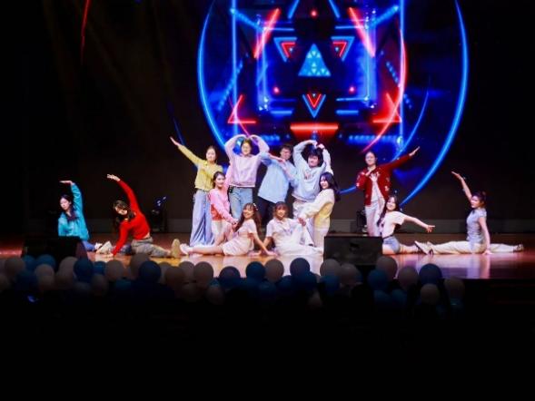奋进篇氛围持续升温,乐队演奏《风拂西湖,歌诉喜欢》以温柔旋律勾勒美好时光,歌舞串烧《快乐进“Zn”时》集结多样舞风,灵动舞姿将现场热度推向高潮;小品《孤注两掷》以网络直播为切入点,在密集笑点中揭露诈骗陷阱,兼具娱乐性与反诈警示意义;舞蹈《Nobody,nobody but jumps》通过柔美与劲酷风格的强烈反差,尽显青春蓬勃张力。穿插的游戏环节中,同学们踊跃参与、积极互动,欢呼声此起彼伏,让晚会欢乐氛围持续升级。