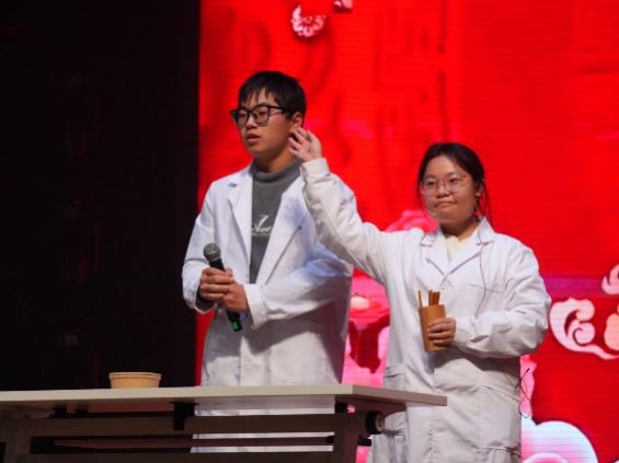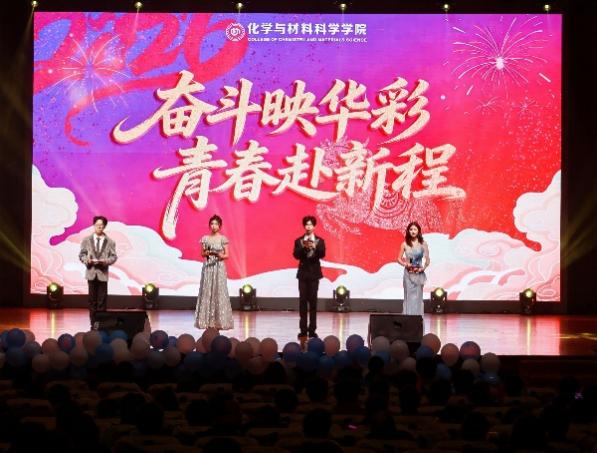 晚会以院歌《化学成材》拉开序幕,学院吉祥物“赛赛”萌趣登场,班导生暖心助阵,迅速点燃现场氛围。