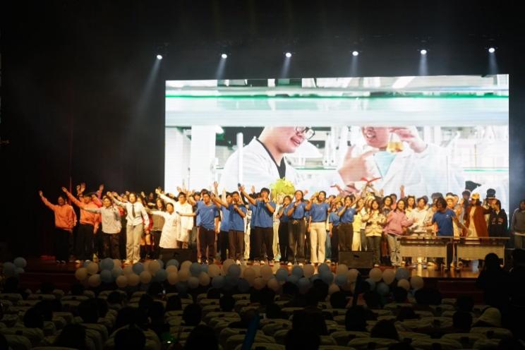 晚会在共唱《化材会更好》中落幕,旋律承载温暖与热忱,定格青春记忆。