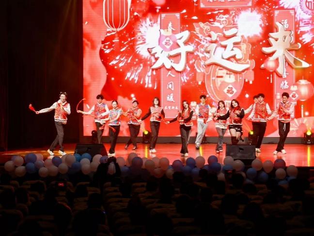 圆梦篇温情与活力并存,2025级化学类4班与6班携手带来的《钻石之舞·疯狂奇遇记》,用炸裂节拍诠释青春锋芒,解锁精彩未来的美好起点;魔术《元素戏法秀》凭借巧妙构思带来一连串惊喜瞬间,让观众沉浸在奇妙氛围中;《“锌”足迹》以真实故事串联成长历程,诉说逐梦路上的坚守与感动;辅导员与荣誉班导师代表演绎的《童年放映机》,还原纯粹童年记忆,拉近师生距离;齐舞《春风拂面好运来》则以明快旋律传递满满祝福,为晚会增添喜庆氛围。