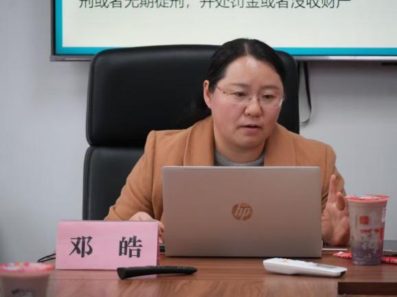 活动伊始,邓皓老师点明本次分享的三大核心内容:新时代大学生犯罪现状及特点、典型法律案例解析和犯罪预防建议。她强调,18岁以上大学生在法律上属于完全民事行为能力人,需独立承担民事与刑事责任,而当下信息技术多样化、价值多元化的时代背景,使得大学生犯罪呈现出手段智能化、时间自由性、场景特定化等特点,需引起同学们高度重视。