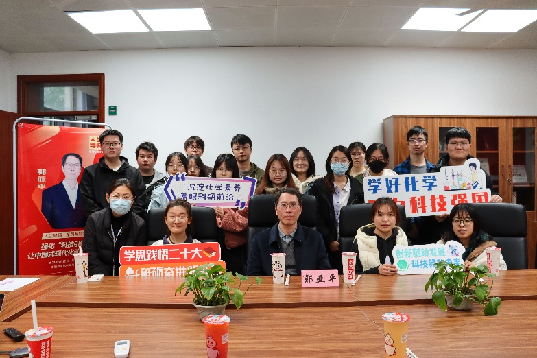 郭老师进一步指出,从根本上讲,中国式现代化要依靠科学技术的进步来实现。同学们要树立“科技强国,从我做起”的坚定信念,面对科技领域的制裁要做到独立自主,努力实现技术上的超越与突破。郭老师分享了自己在高性能永磁铁氧体、生物医用材料以及环境净化材料的研发与应用等领域的取得的先进成果,以亲身经历启发同学们,只要肯刻苦,肯钻研,没有什么是做不成的。面对生物医药、芯片半导体、集成电路等核心领域受制于人的现状,青年人要肩负起科技强国的时代重任,强健体魄、刻苦学习、与人为善、继承传统,“在青春的赛道上奋力奔跑,争取跑出当代青年的最好成绩”。