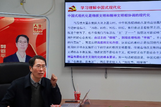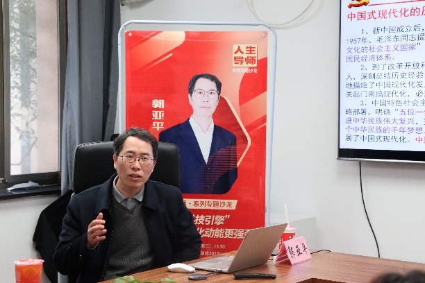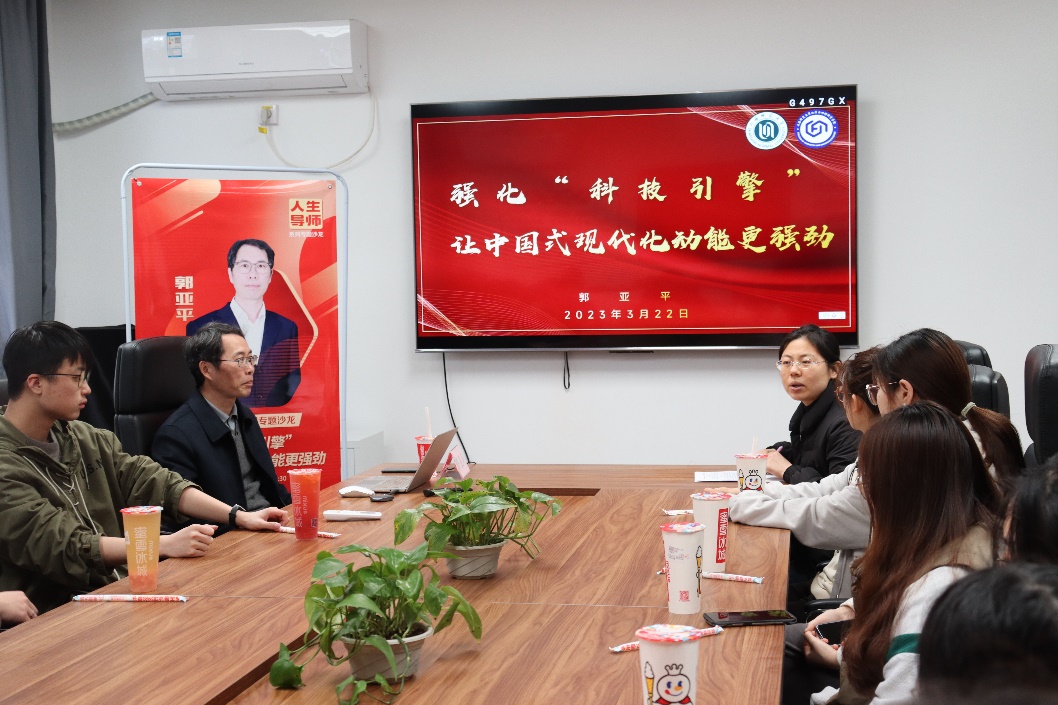 恪守初心使命,绘就壮美蓝图。3月22日下午,成人影院 3月份的人生导师沙龙活动在奉贤校区成人影院 楼202会议室如期举行。成人影院 研究员、博士生导师郭亚平老师以“强化‘科技引擎’,让中国式现代化动能更强劲”为主题,带领同学们学习理解中国式现代化的深刻内涵,感悟化材学子在科技强国道路上肩负的时代重任。本次活动由成人影院 思政专项辅导员李晓彤老师主持。